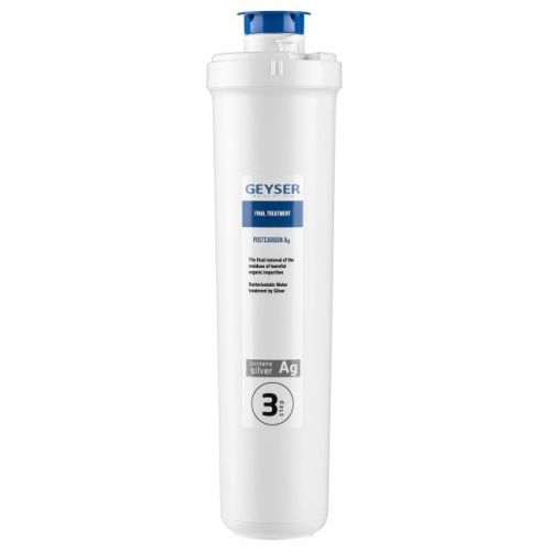Картридж Посткарбон Ag Смарт применяется в бытовых фильтрах Гейзер Смарт Универсальный и Гейзер Смарт для жесткой воды.